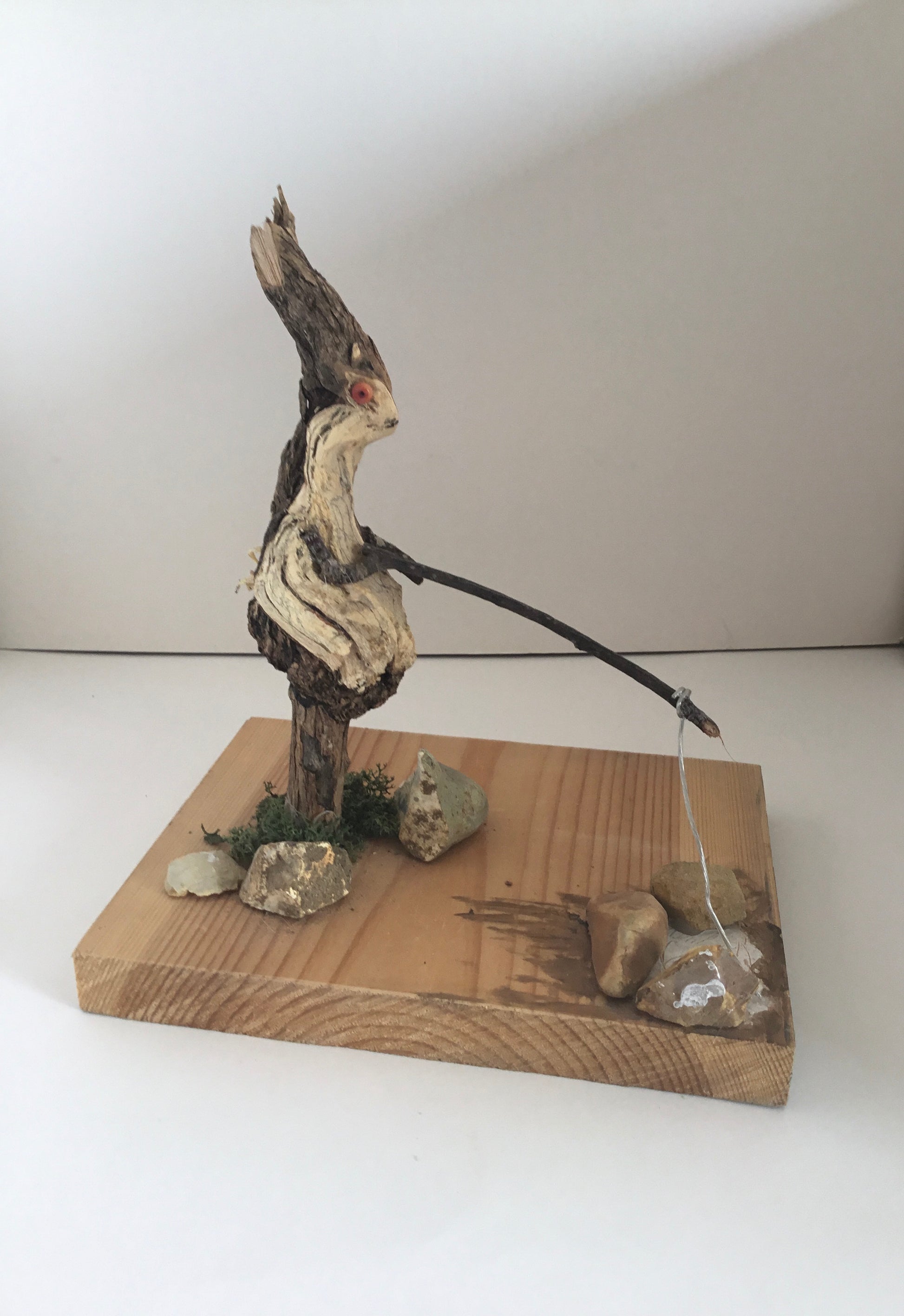Wood found on the Sussex Downs inspired me to make this little rabbit . Sitting on a toadstool fishing . Mounted on a base .